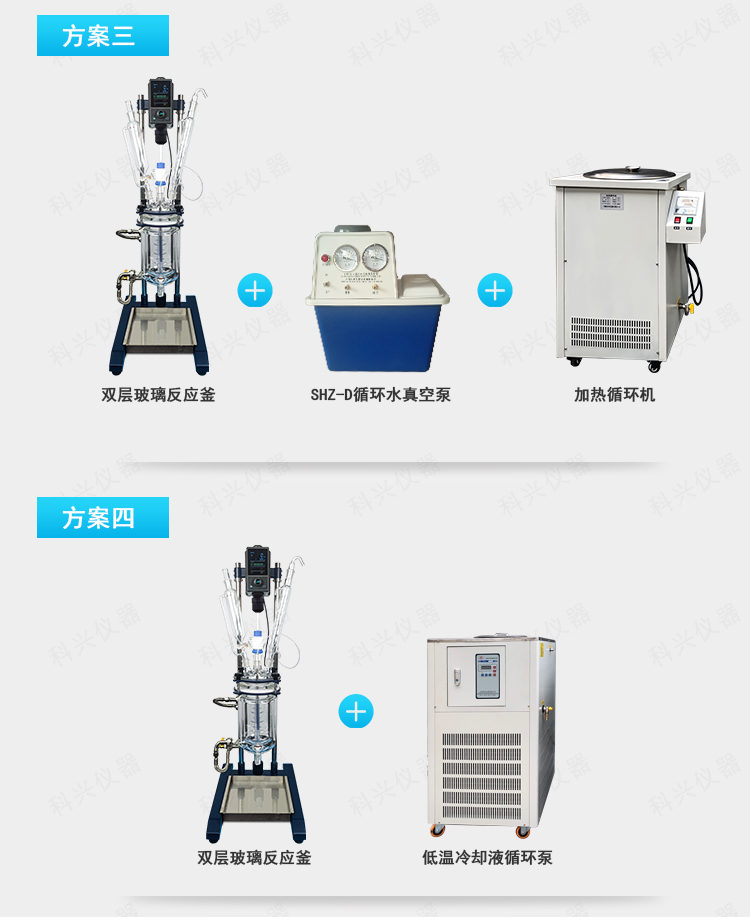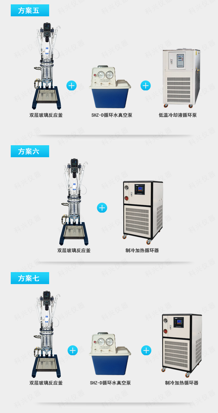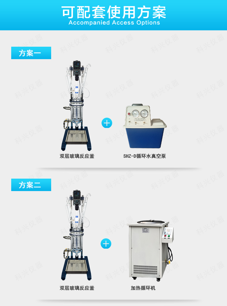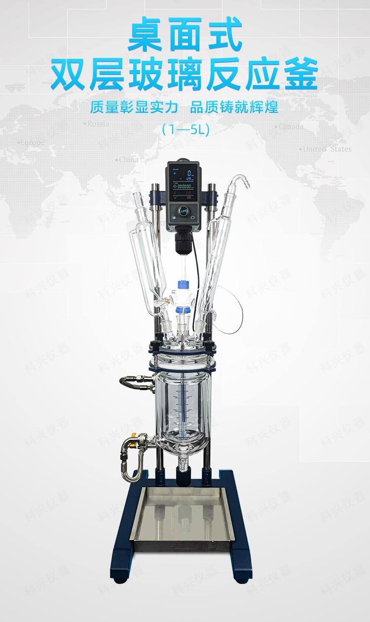双层玻璃反应釜为双层玻璃设计,内层放入反应溶媒可做搅拌反应,夹层可通上不同的冷热源(冷冻液,热水或热油)做高温反应(配置相应的循环油浴锅,温度可以达到300℃)或低温反应(配置相应的低温冷冻液循环系统,温度可以达到-80℃),也可选择加热制冷一体循环机;在设定恒温条件下,在密闭的玻璃反应器内,可根据使用要求在常压或负压条件下进行搅拌反应,并能做反应溶液的回流与蒸馏,使用中可以抽成真空,从而做真空反应。是现代精细化工、生物制药和新材料合成的理想中试、生产设备。它的这种设计使试验更加的安全,更加的方便。