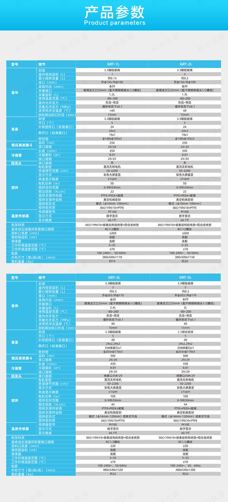 | 型号 | GRT-1L | GRT-2L | GRT-3L | GRT-5L | |