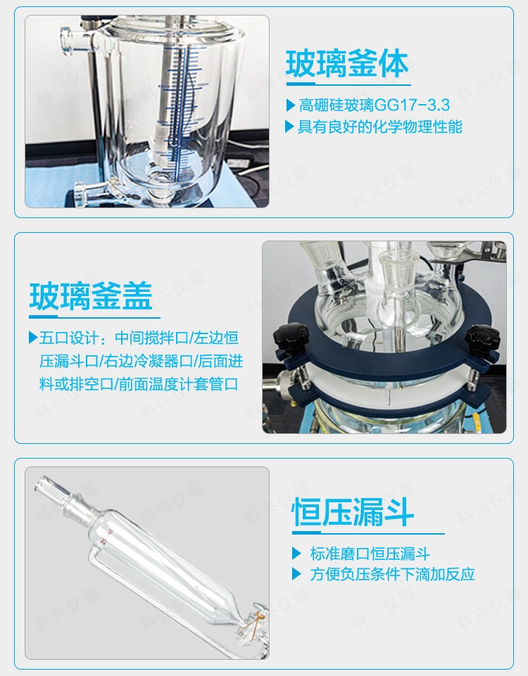 | 釜体 | 材质 | 3.3硼硅玻璃 | 3.3硼硅玻璃 | 3.3硼硅玻璃 | 3.3硼硅玻璃 |